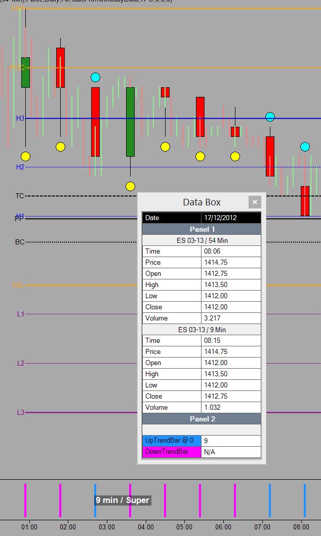 In consequence, my indicator is giving one information at 8:06 (onbarclose) and it is changing the result during the next 3 bars. This means that what you see in the attached image as blue dot on the bar can change during the next three 9m bars.