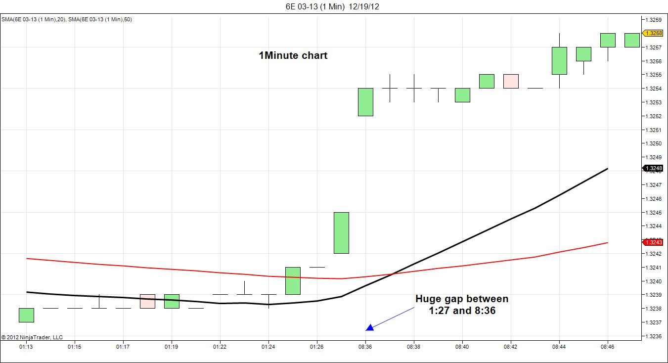 Globex 5 min chart of the 6E appears to indicate Globex was generating price data