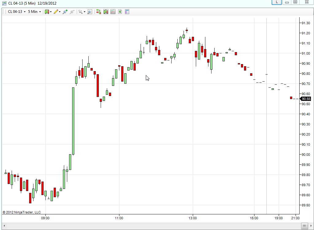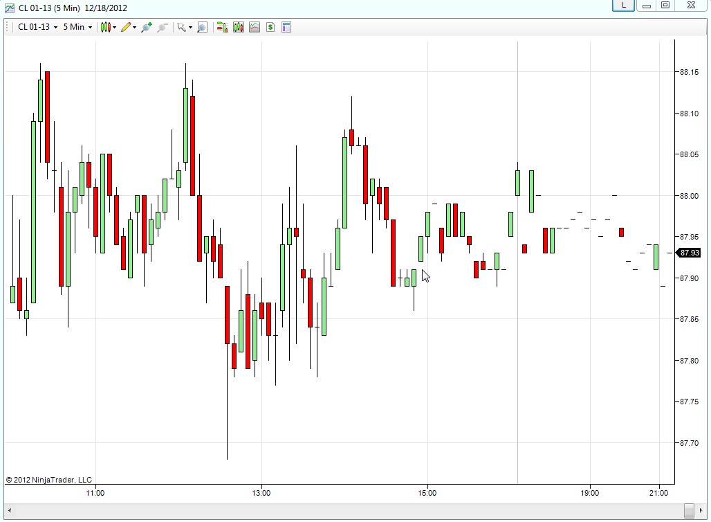 I took the attached picture around 9:45 PM and if you look at the tail end of the chart there are only two bars after 9PM, one says 9.25PM and other one for 9.40PM. I am just wondering what happened to the rest of the bars. It is a 5 min chart so I am assuming there should be a bar at the end of every 5 min intervals.