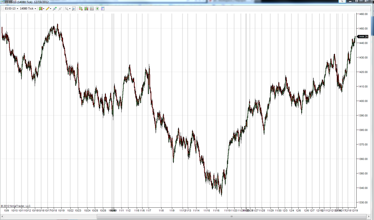 Start NinjaTrader and create a new chart. Check if data is loaded similar as the attached screenshot.