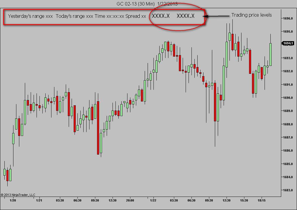 the range of the prior day as well as the day's range, the time, spread for the Instrument and possibly the price at which the instrument is trading at.