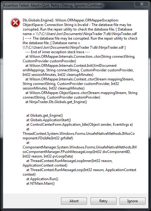 -Then restart the software and NinjaTrader will create a fresh database file to use