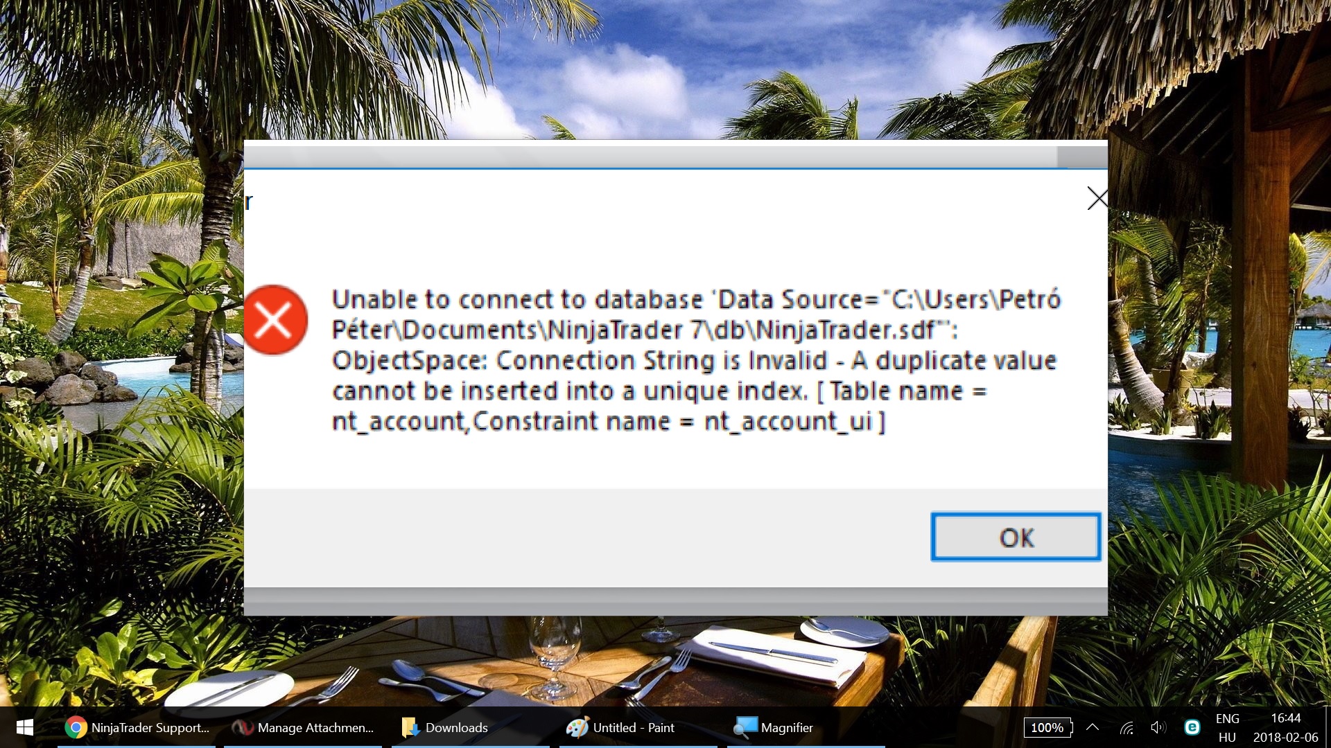 After the message saying that it cannot connect to the database, it prompts me to a similar error saying something about Db.Globals.Engine1: