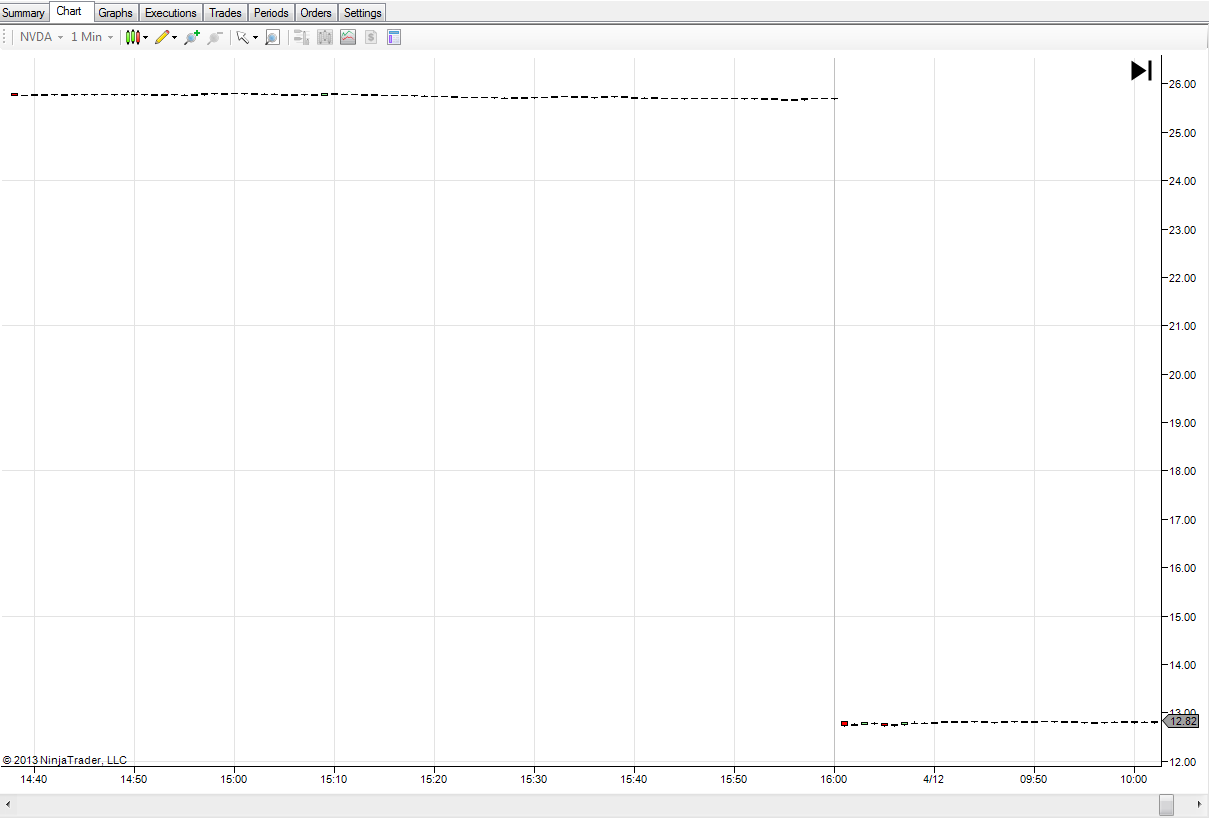 the price on 4/12 is around 12.xx, but on 4/11, the price is around 25.xx