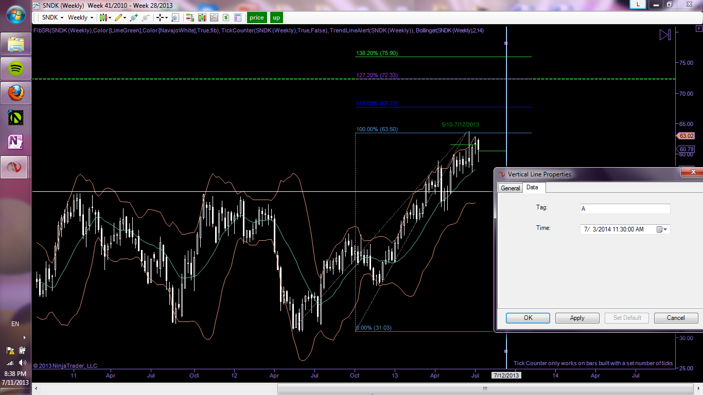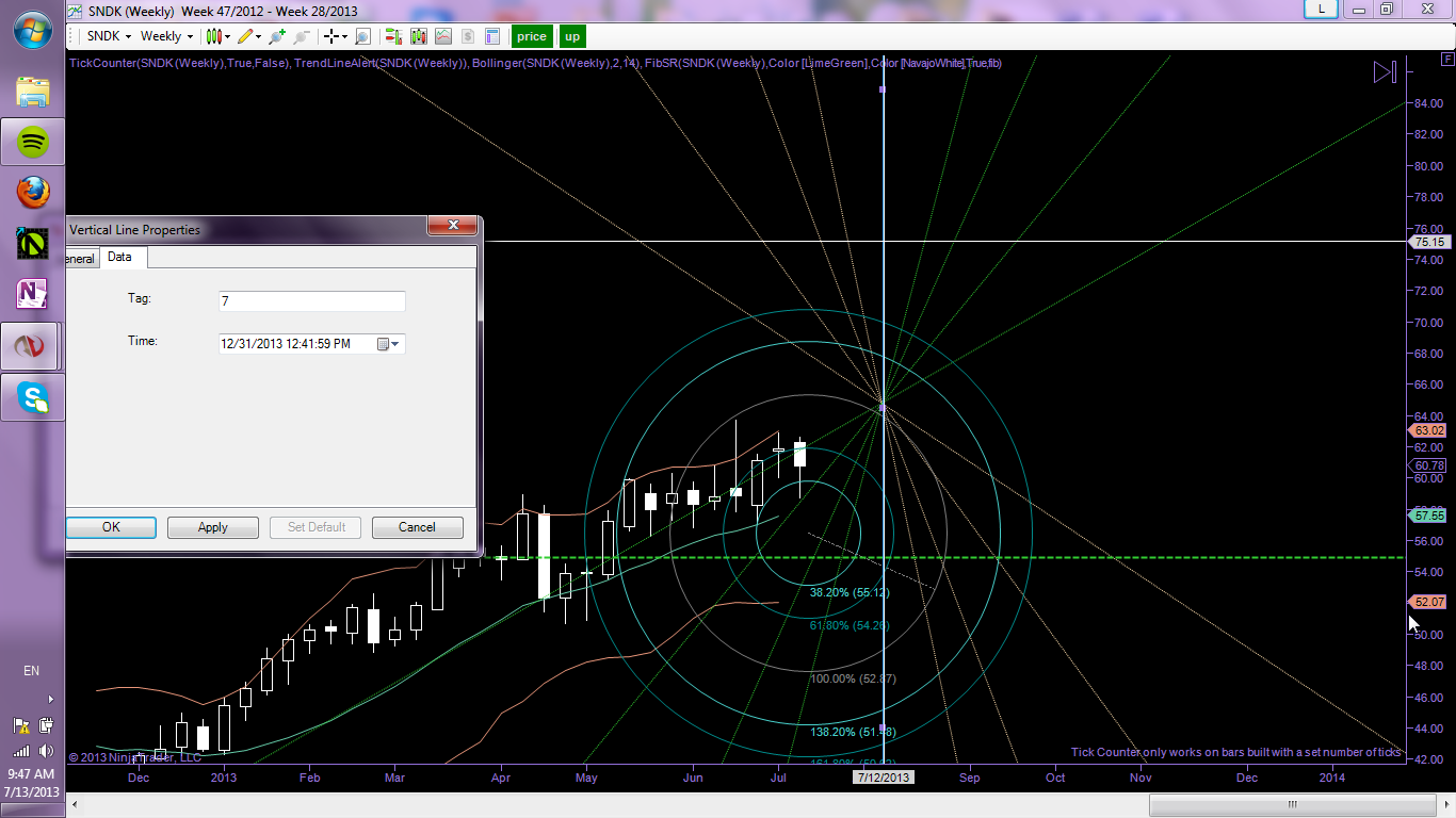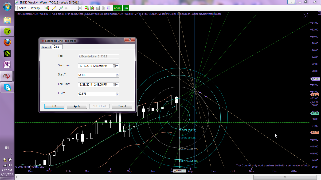 I have a weekly chart here and a chart with equidistant and nonequidistant spacing.