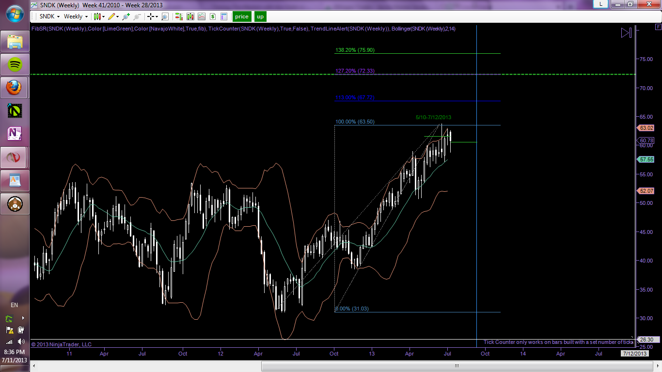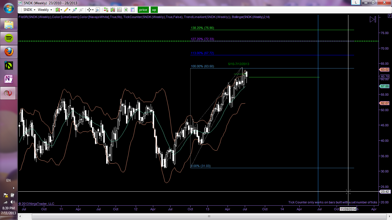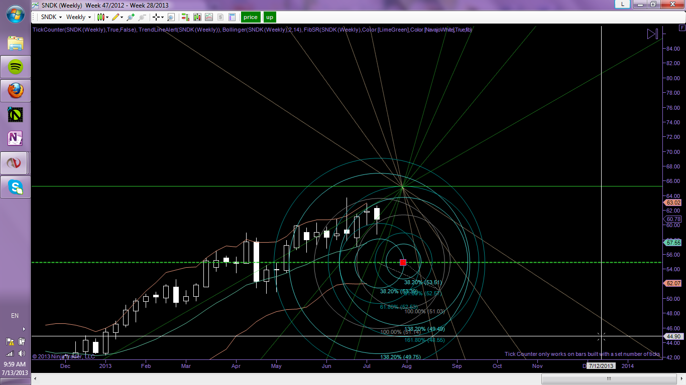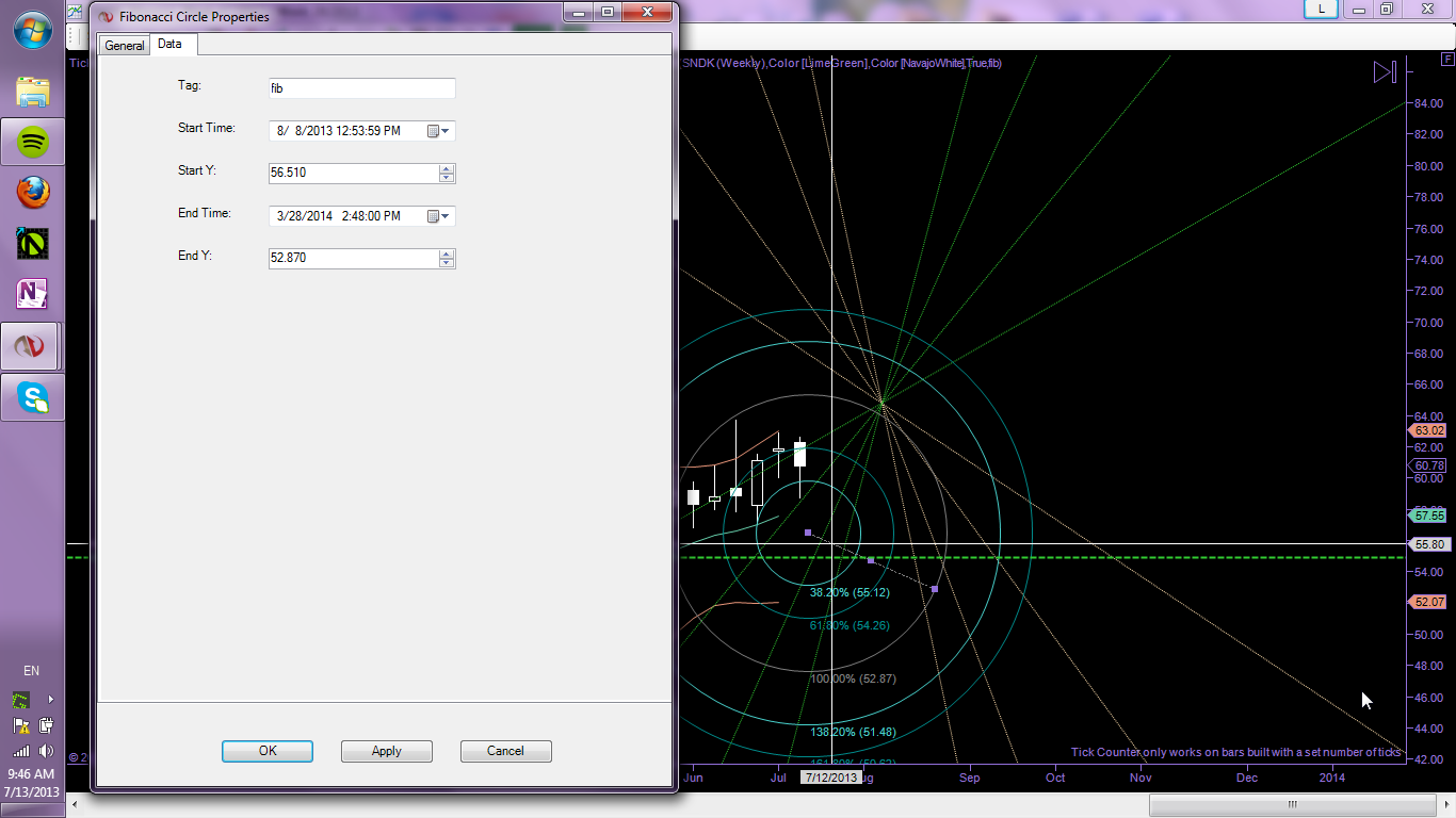 I have a weekly chart here and a chart with equidistant and nonequidistant spacing.