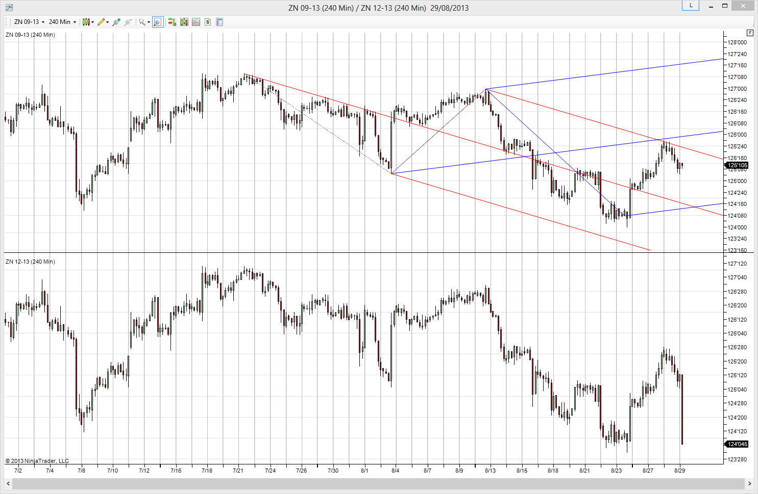 I am having problems with charting the US 10-Year Treasury Note Futures Dec-13 (ZNZ13). I am connected to my Interactive Brokers account and using 240-Minute charts for this instrument.