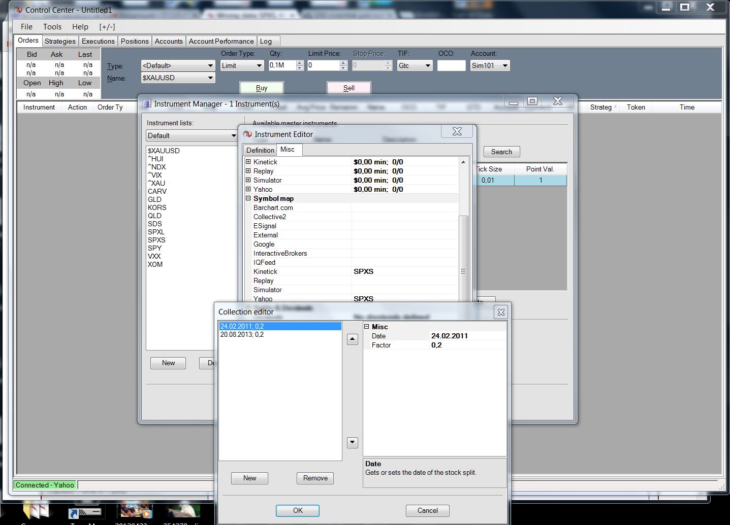 Once connected to Yahoo go to Tools > Instrument Manager, search for and select the instrument and click Edit.