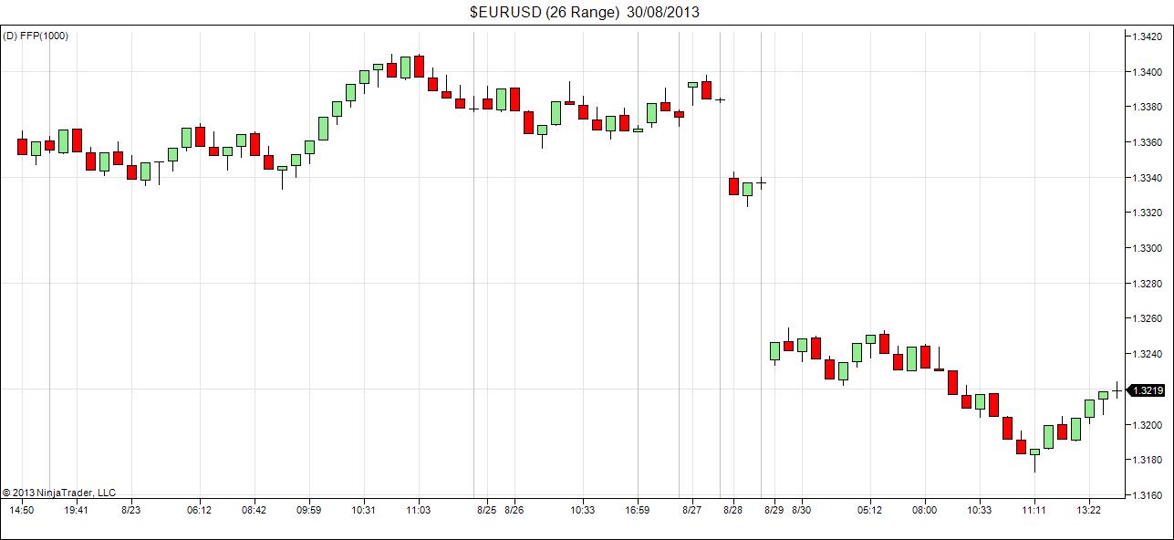 pstrusi, judging from this screenshot it seems you're missing historical tick data to build your EURUSD range bars from? If you check for example the Historical Data Manager for those days, what would it indicate in regards to data availability? As the IB connection would not allow for reloading of tick data from the server, a backup 'true' datafeed connection like Kinetick might be helpful to supplement the setup.