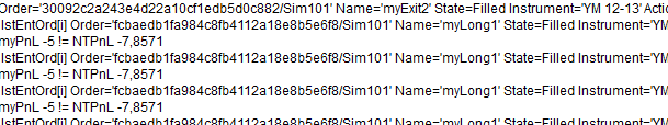 May be NT using FIFO during replay? http://www.ninjatrader.com/support/f....php?p=341404#Code:if (Positions[0].MarketPosition == MarketPosition.Long) tmpO = ExitLong(0, lstCntrNum1[i], "EXT"+i.ToString(), "ENT"+i.ToString()); if (Positions[0].MarketPosition == MarketPosition.Short) tmpO = ExitShort(0, lstCntrNum1[i], "EXT"+i.ToString(), "ENT"+i.ToString()); lstExtOrd1.Add(tmpO); if (Positions[1].MarketPosition == MarketPosition.Long) tmpO = ExitLong(1, lstCntrNum2[i], "EXT"+i, "ENT"+i); if (Positions[1].MarketPosition == MarketPosition.Short) tmpO = ExitShort(1, lstCntrNum2[i], "EXT"+i, "ENT"+i); lstExtOrd2.Add(tmpO);Last edited by n0_namer; 09-15-2013, 07:40 AM.