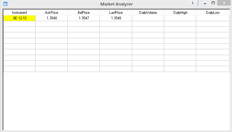My market analyzer only shows the askprice, bidprice and lastprice. If I ad a row with daily volume for example the row keeps blank!