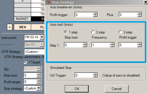 How many additional ticks in profit after your Profit Trigger is hit do you want the stop to move? Every 1 tick, every 2 ticks, etc.