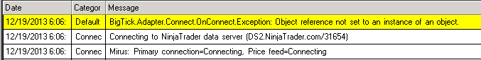 Just read reports on BMT that Rithmic has cancelled it's contract with Zenfire and that AMP no longer supports Zenfire. How could NT not know this was coming? Does this explain the development of BigTick? and the reason behind yesterday's Zenfire data being 5 min late? and the inability to connect to Zenfire today? Why was the user not informed of this situation when we complained of problems with ver.17.? Is ver. 17 an attempt to pave the way for the dropping of Zenfire and replacing it with BigTick... thus explaining the BigTick reference in my NT Log? And again...why were we not told?Last edited by glennts; 12-19-2013, 05:58 AM.
