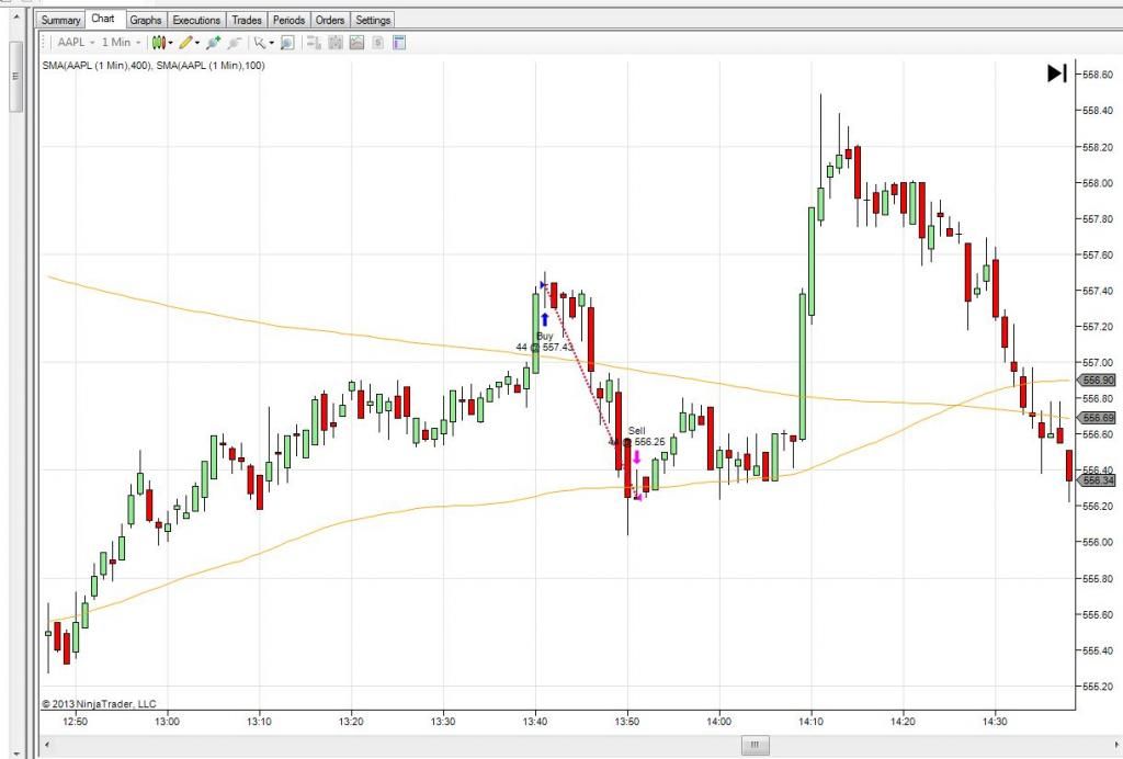 I thought the code looked correct to execute these two conditions but when I looked back through the charts there are order executions within 1.5 hours of each other and sometimes the price crosses back below the SMA(400) within 25 minutes of purchasing it and it doesn't sell!