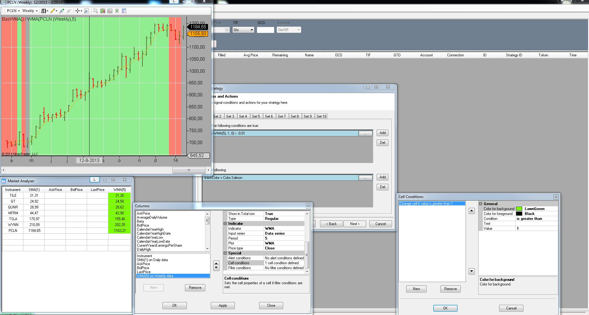 The last part is setting up cell conditions in the Market Analyzer.