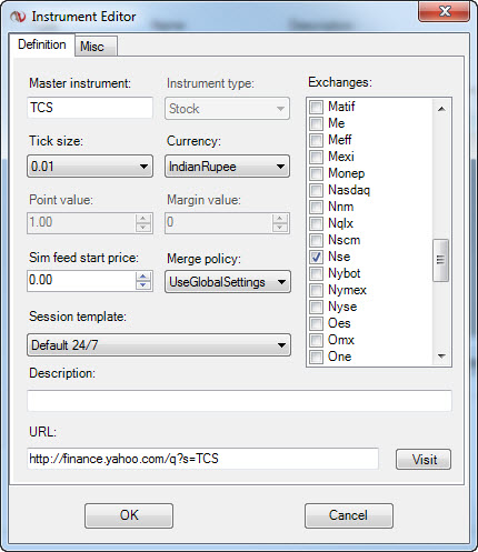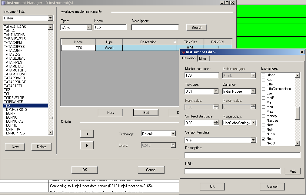 The Google data feed's exact symbol mapping can differ from what is listed on Google Finance. For the TCS I cannot map this to Google, but I am able to map it to Yahoo: http://www.ninjatrader.com/Connectio...tion-Guide.php
