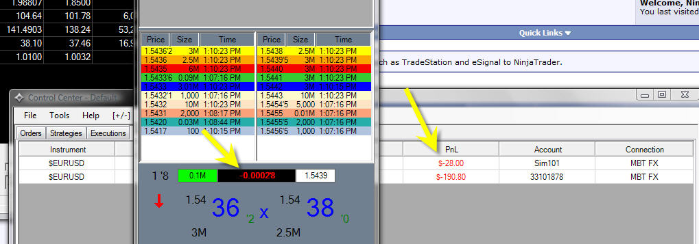 1. Being that there are fractions of pips being traded when a trade occurs at a fraction, the decimal is dropped for a hyphen. On the orders tab it is handled as a decimal. On the quotes it is not. When the math is applied to the trade P/L it is not correct.