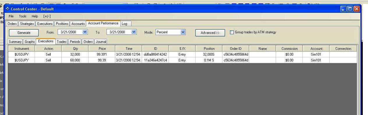 2. Almost all trades (positions) are reported as 0.1M for a 100k position or 0.01M for a 10k position. Occasionally and it would seem in the case of a partial fill trades shows up as a full number such as 90.