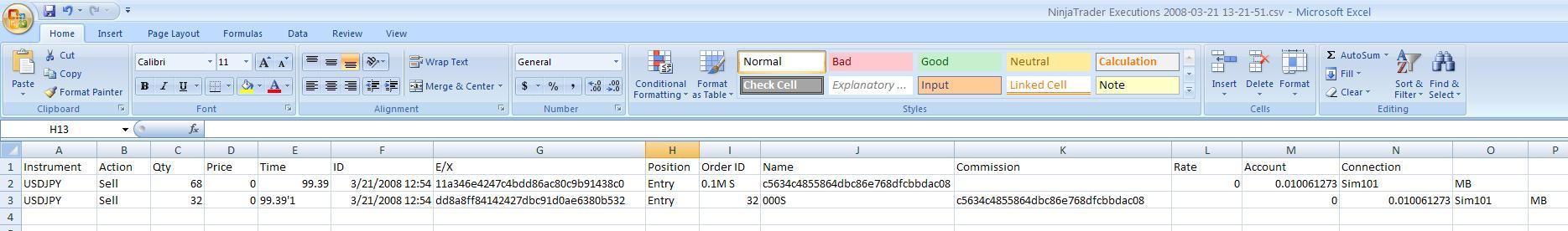 If you export this to a spreadsheet it forces an additional column for the row that has this type of a trade - forcing all information over one cell to the right.
