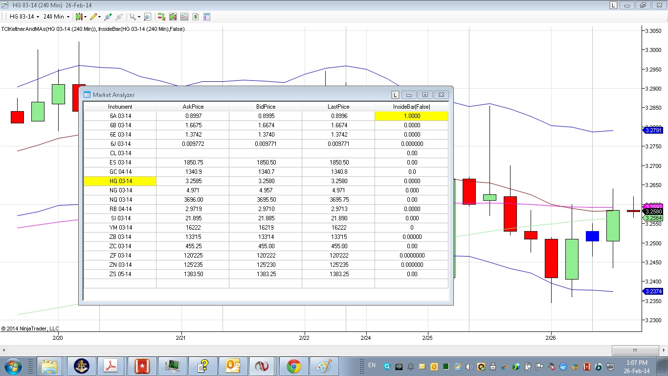 Here are some screen shots. I took one of the market analyzer with the HG chart in the background. In the MA there is no alert. One the chart you can clearly see the last bar is an inside bar. Maybe it's something with the NT program as it is not indicated as a blue bar as the others are.