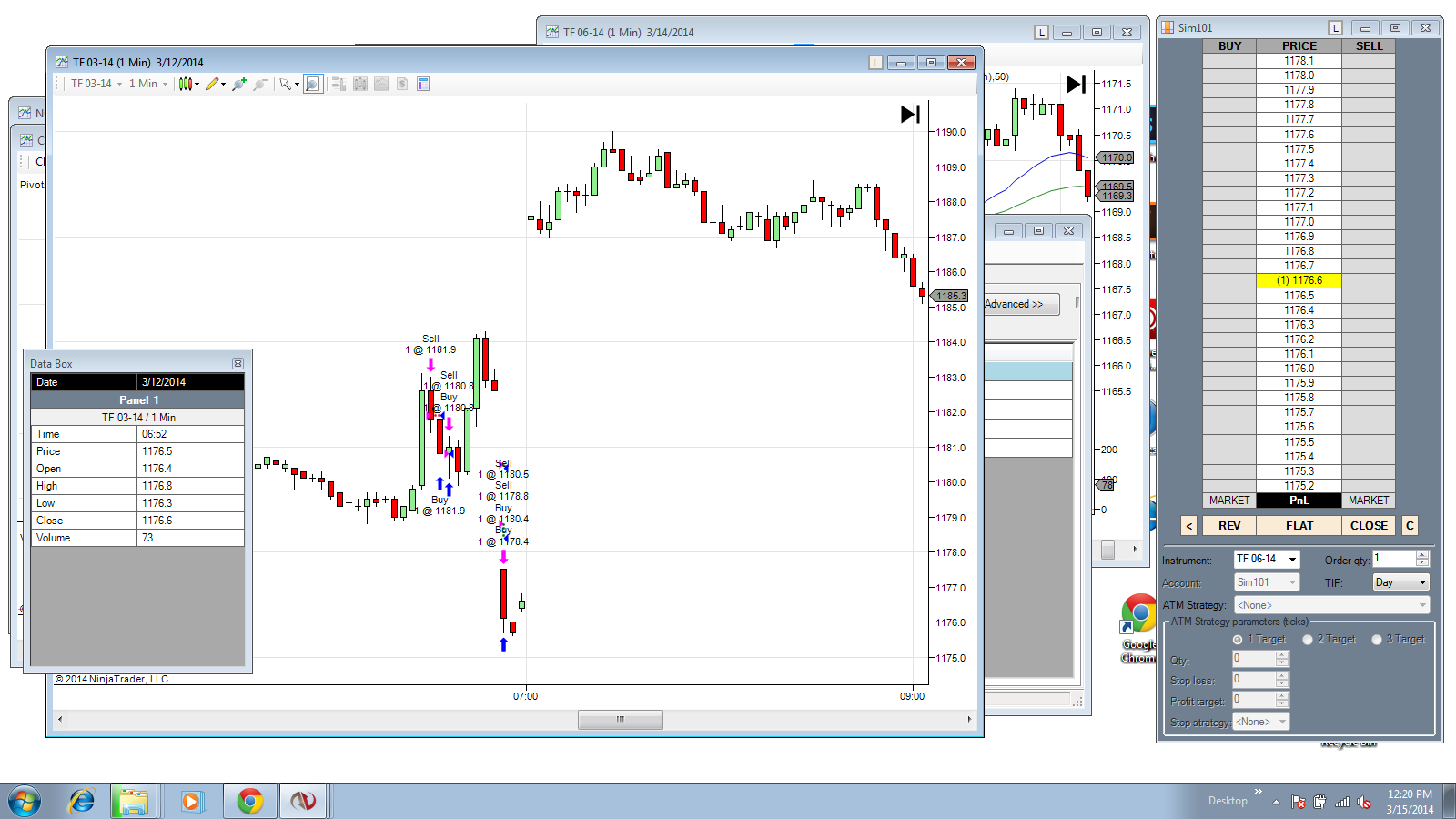 Now it's not tracking all the data. There are gaps already. Be back in a minute. Trading.Originally posted by bce111 View PostFWIW so far today the data is tracking correctly and reloads all of today's 1-min data on clicking Reload Historical data. This is for CL 04-14, and TF, YM, ES, NQ, and 6E 06-14. Hopefully it won't break down overnight or fail at the open. This is from the CQG feed from AMP.