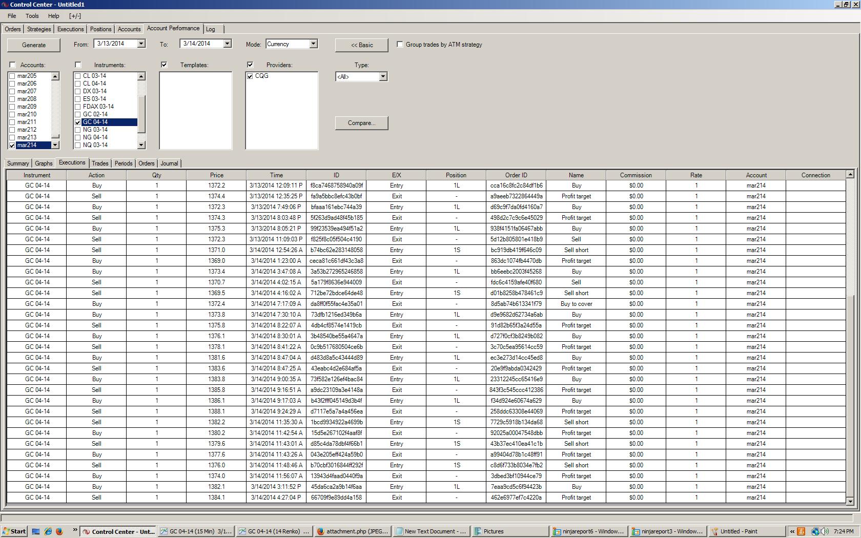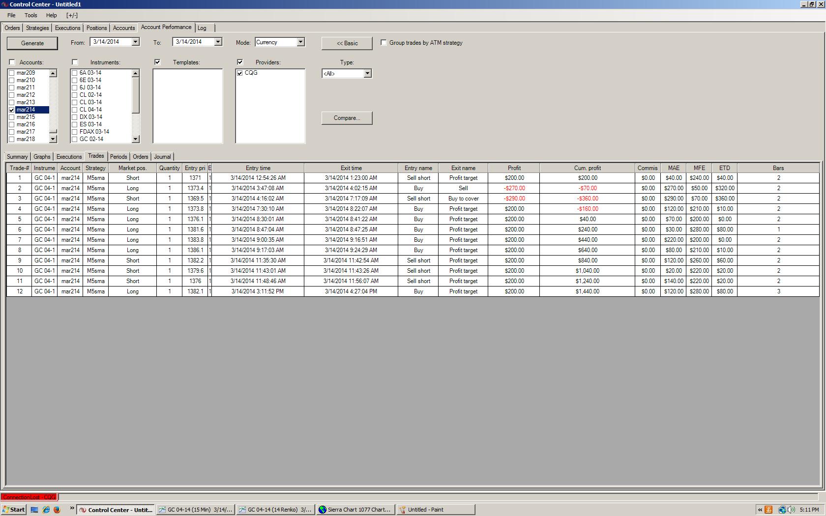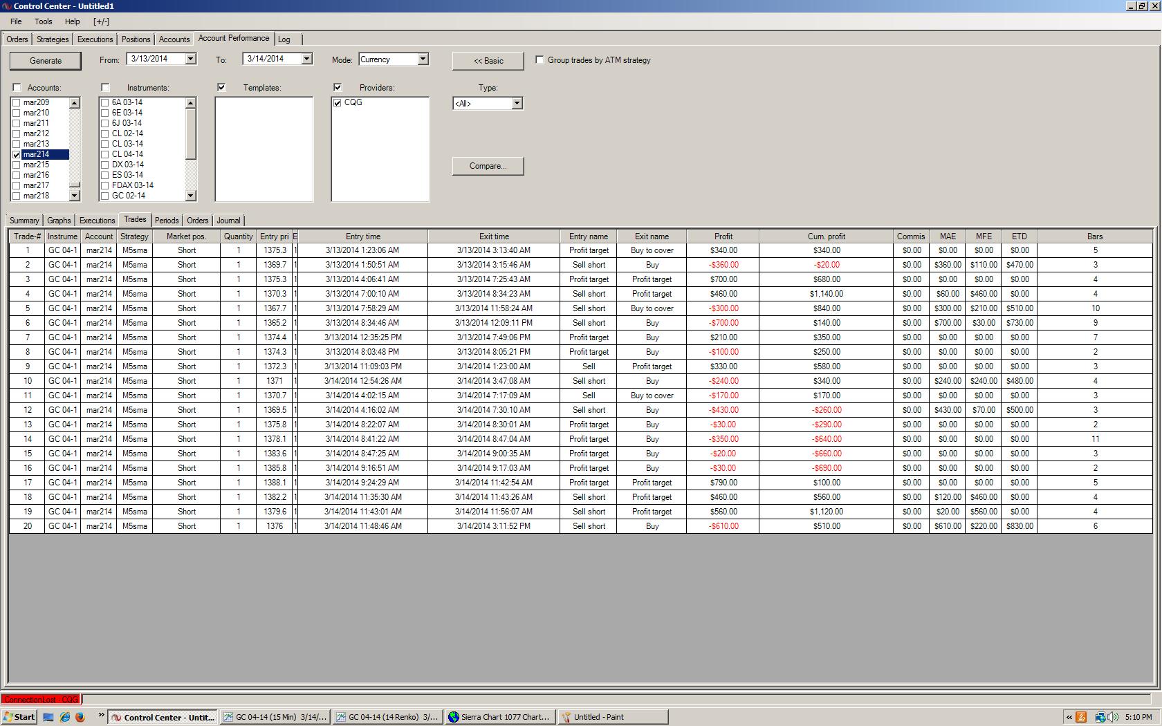 You can look at the trades on fri 3/14 and see that they show up differently on each report. The other report is a 2 day report on same strategy.