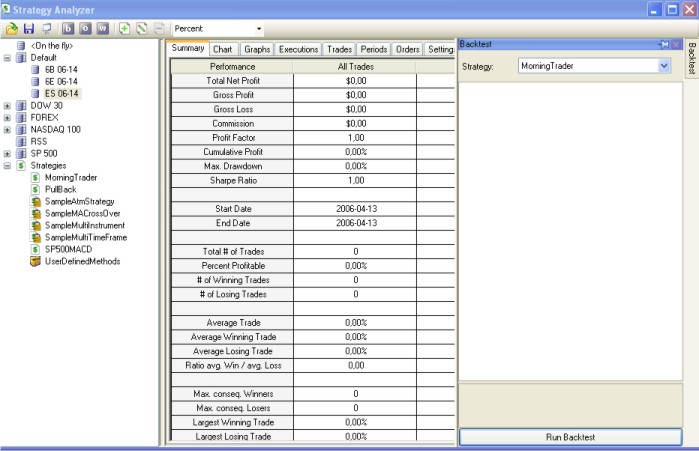 You won't see anything. It goes like this: I'm clicking in the left menu "ES 06-14 --> Backtest". The option window on the right side is coming out with his default settings "SampleATMStrategy". If I change it to my strategy the window doesn't change the setting options. On every other strategy done with the wizzard it works well. I can send you the file if you want.