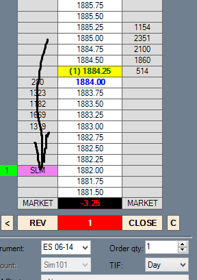 Using a narrow Stop and Limit range such as this can prevent a fill from taking place in a fast moving market. Widening the range between the stop and limit price is worth experimenting with in the Sim101 account.