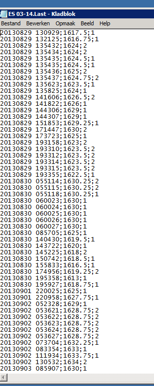 • Click the plus "+" to expand ES 03-14 -> expand Last -> expand Tick -> expand March 2014