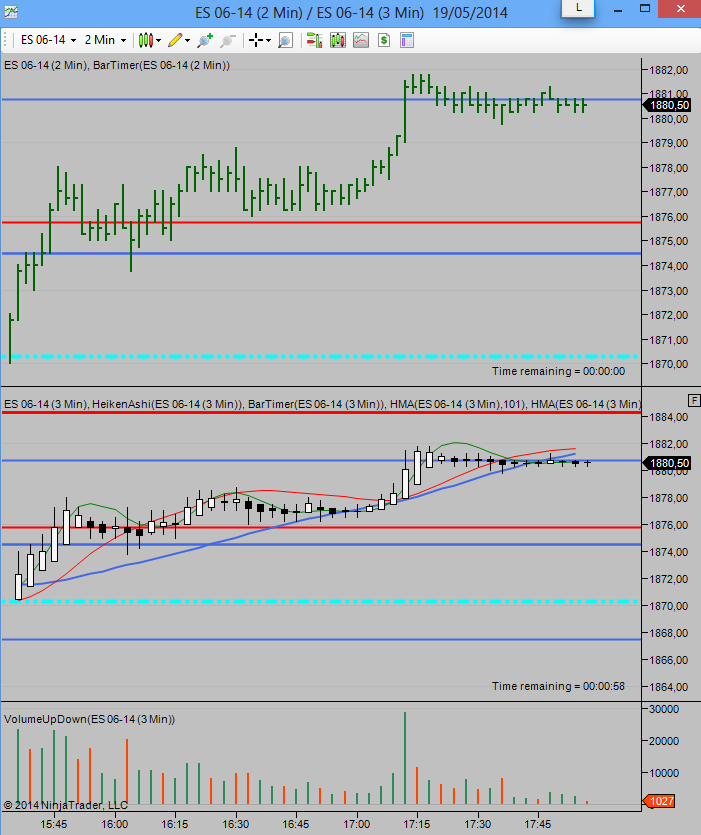 I´m trying to get in one window a chart based on bars and the same chart but based on Heiken Ashi, both with the same temporal frametime, it means, both chart in 3 minutes or whatever. But I don´t know why, I get to do it but with different timeframes!!! It doesn´t allow me in the same frame time!