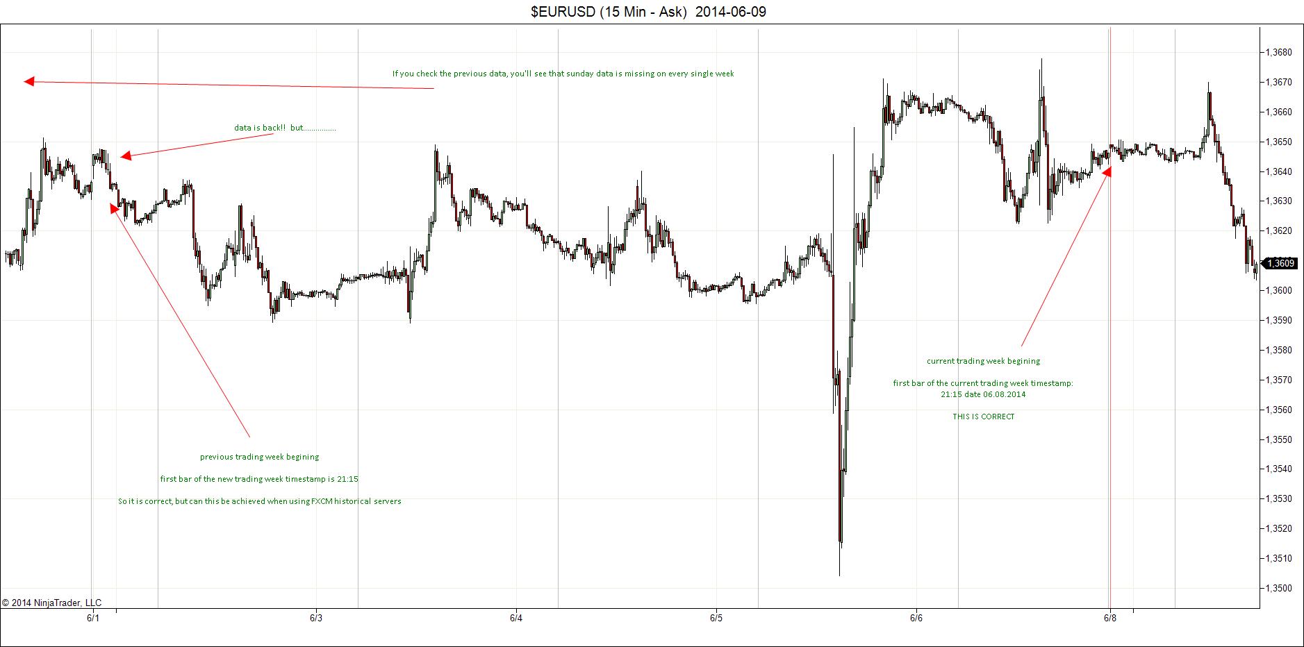 What is interesting, is that the data of current trading week is not affected, the charts are updating right from the market opening on Sunday. (Ninja shows exactly the same sunday chart as FXCM webtrader)