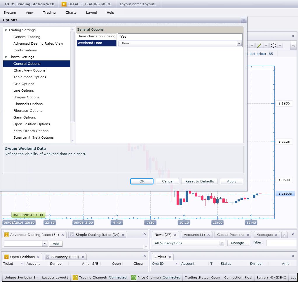 I am unfamiliar with how to enable weekend data for chart within FXCM's Trading Station. So I may look at this further with development can you please provide the steps of how to enable this within FXCM's Trading Station?