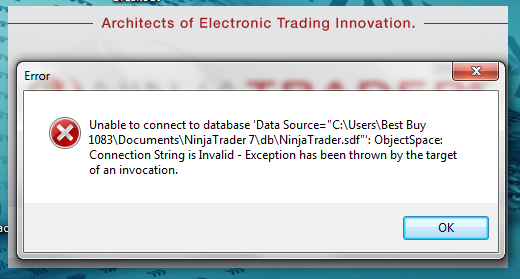 • Install latest SQL Compact Edition 3.5. SP2 which is available here: http://www.ninjatrader.com/support/f...CE_3.5_SP2.exe