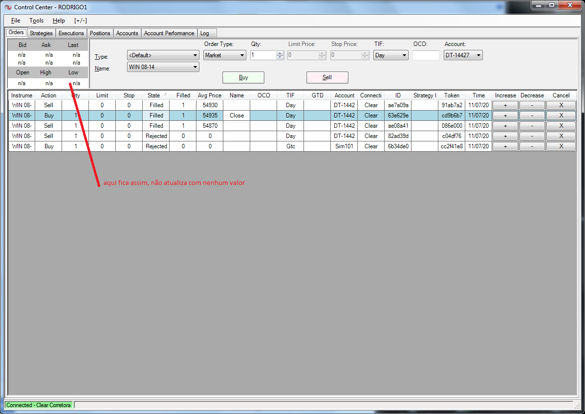 I'm having an issue when connecting to Clear Corretora, I'm able to see filled orders, I'm even able to submit orders thru NT, but I can't see prices feed, can't see prices changing, superdom is all blank and charts don't refresh automatically.