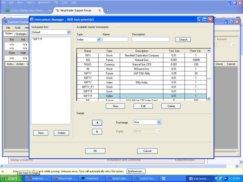(Ive added "NIFTYF1" in Instrument Manager as INDEX )