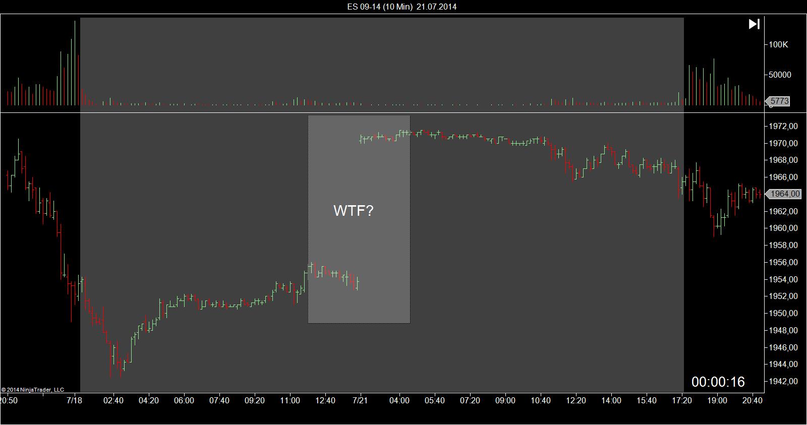 I do not have RTH data for this instrument for trade date 7/18. On a tick chart I have the last bar at 3 04am AZ time. The next bar locates at 17 22 11 AZ time. I have theovernight session for 7/18 but no RTH session. I am unable to retrieve data for that trade date for a 30 min chart as well.