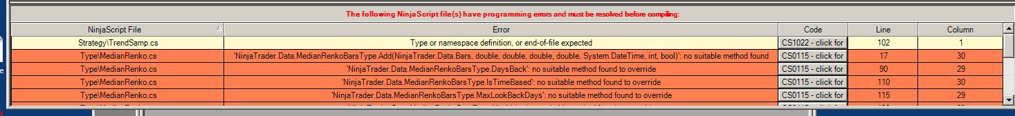 Instructions from that forum thread: Please remove the .cs file from your bin->Custom -> Type folder. Rename the file to MedianRenkoBarsType.cs, zip it into a zip file named MedianRenkoBarsType.zip with the file .cs file in the \type directory, import it, restart NT, and it will appear in the data series list.
