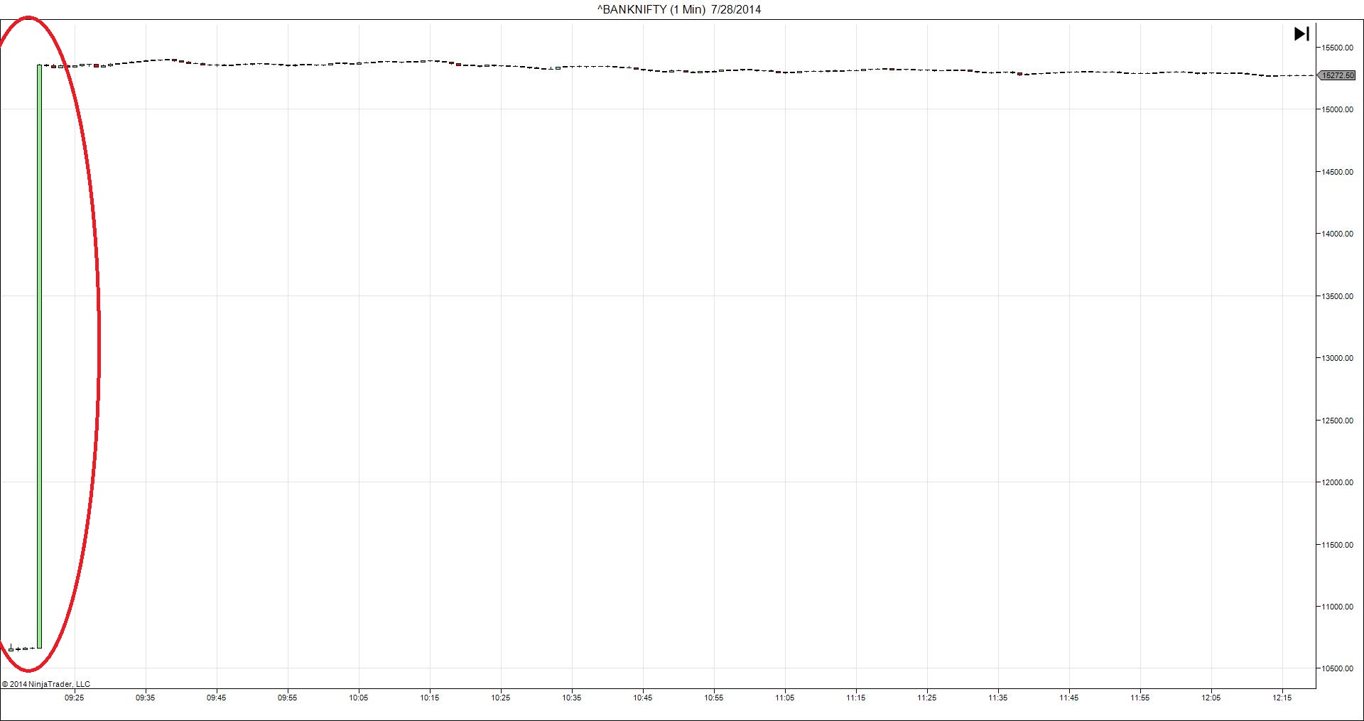 I am using Latest build of NT & Realtime from IB Latest Build 946.2f, July 21,2014 1:22:08 PM, Today i had a problem with NSE (NIFTY50 & BANKNIFTY), NT CHART showing wrong OHLC from today market opening time , 9:15 to 9:20 , i tried all other option deleting symbol , uninstalling NT & clean all caches & folders etc,,,, but still the data problem was continue, basically TWS charts having correct data but NT charts are showing incorrect data.