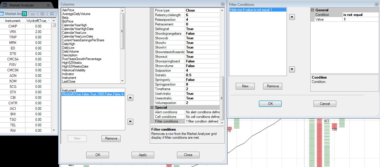 - Right mouse click on the Market Analyzer > Row Filter