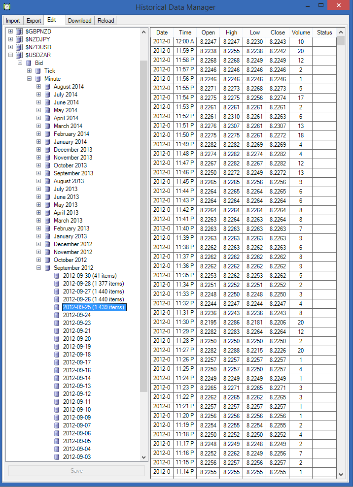 I have tick and minute data for the USDZAR forex pair from January 2012 till August 2014.