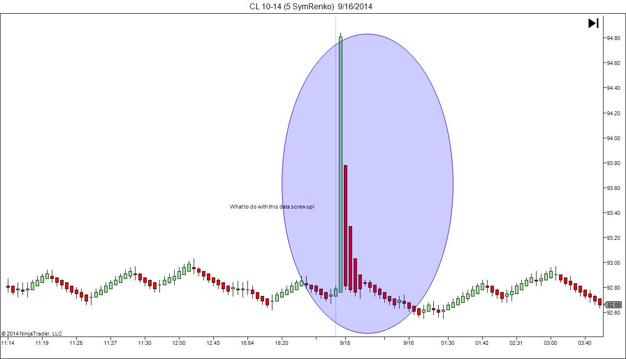 Please also test with a default tick based bar type, and not just a 3rd party renko so we can isolate if the problem is a display issue with that specific bar type, or if it is a matter of data.