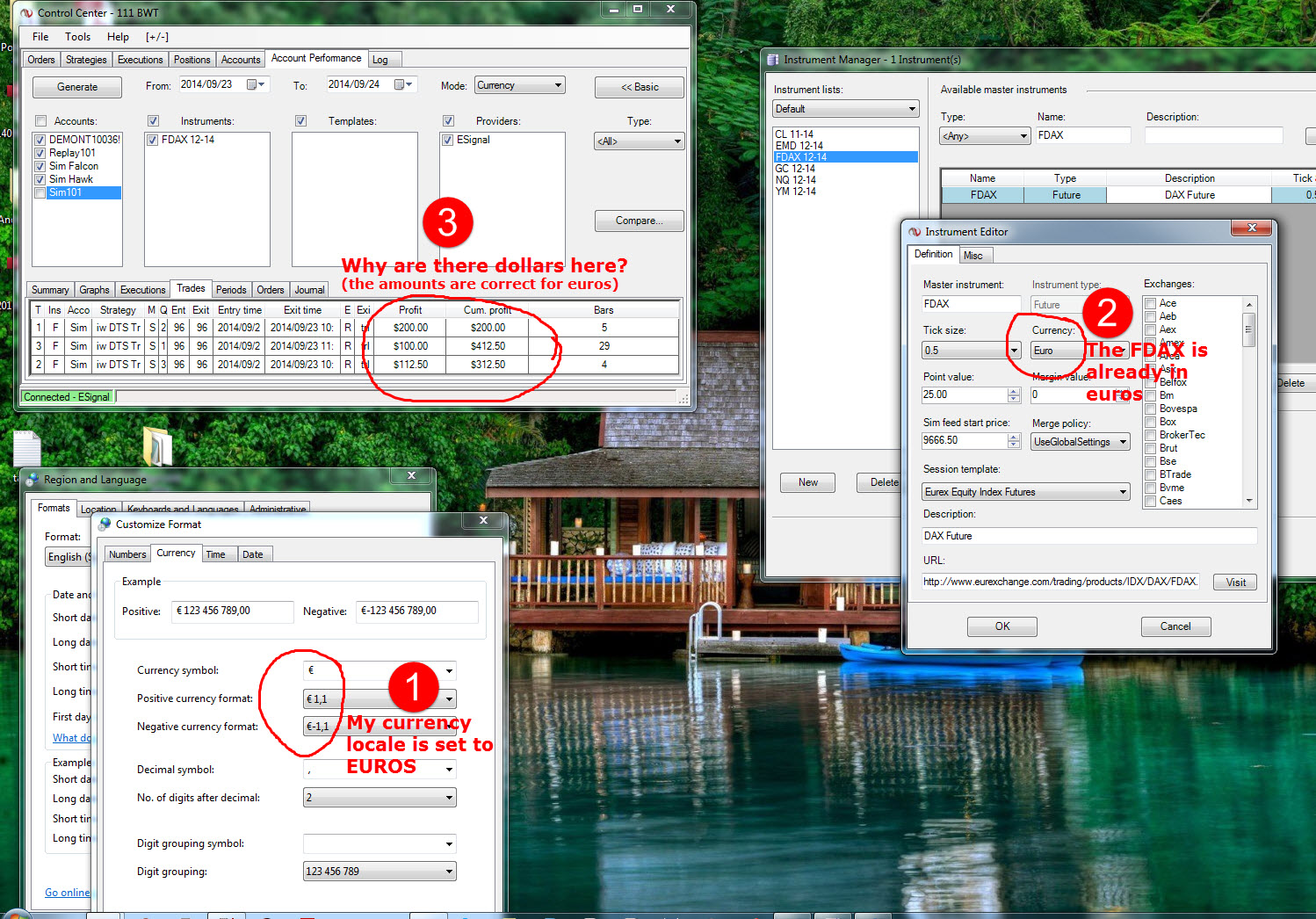 The contracts I trade are in USD and EUR, my reginal currency on my PC is set to ZAR.
