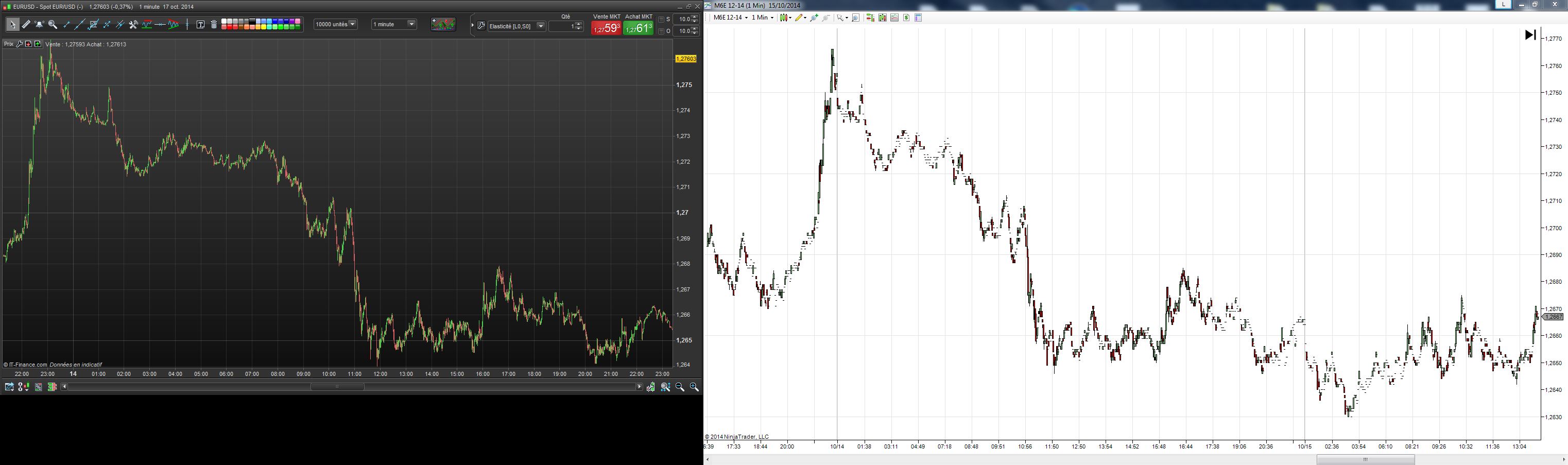 I got a problem with Forex data. Look at the picture the EUR/USD datas, 1 minuts candle, at the right it's Prorealtime, at the left Ninja.