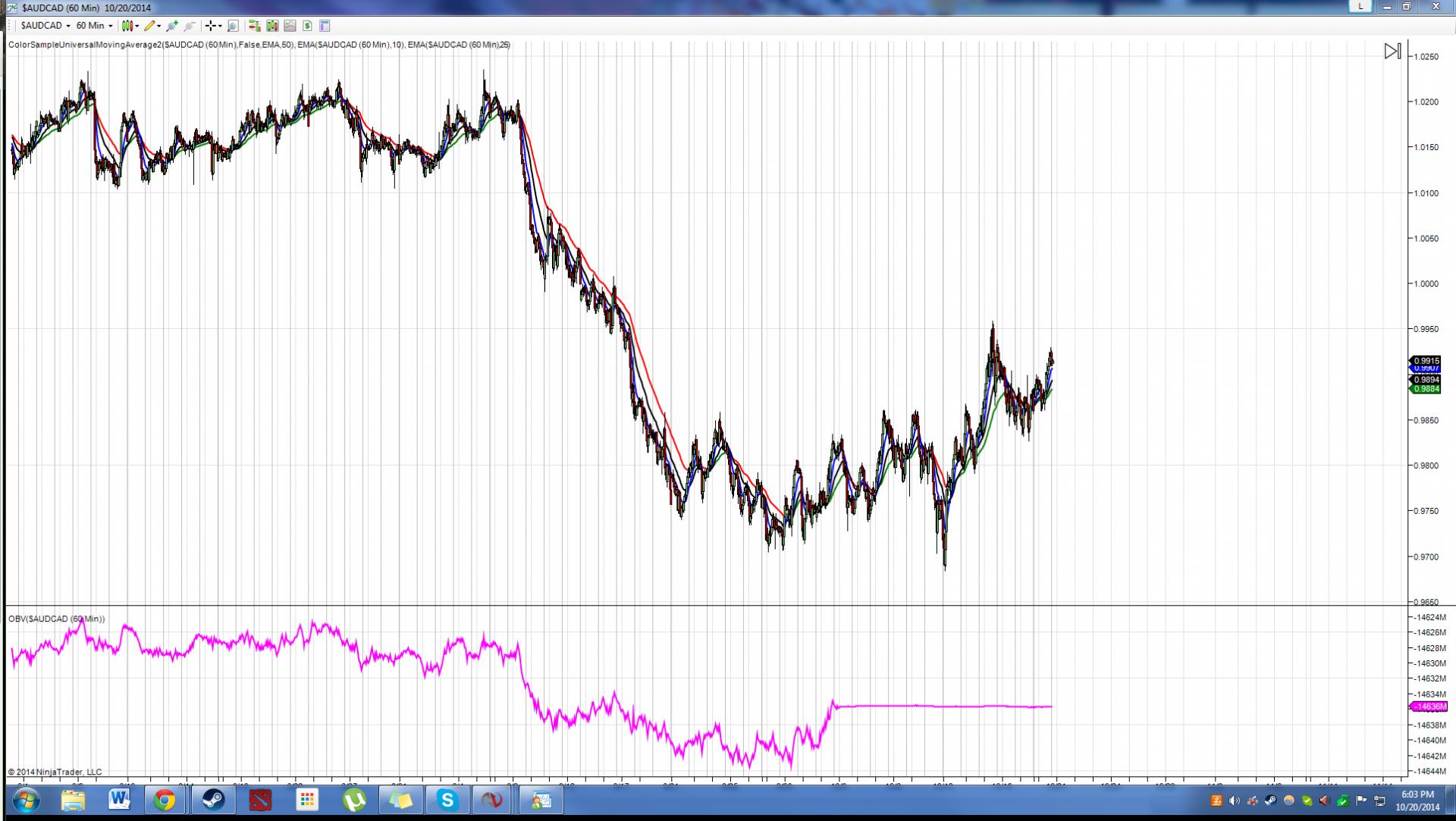 It is a matter of scale. Your OBV values are in the trillions. That means that even variations of 100,000 are unlikely to be very visible while your trillion scales are showing. In any case, it being FOREX, I would be suspicious of anything that purports to measure variations in volume.Originally posted by magnatauren View PostI've been working with the OBV a little bit, and I'm trying to work around this issue, but I cannot figure out why it does this, some other threads say that it's a divide by 0 bug but I cannot see how that is possible.