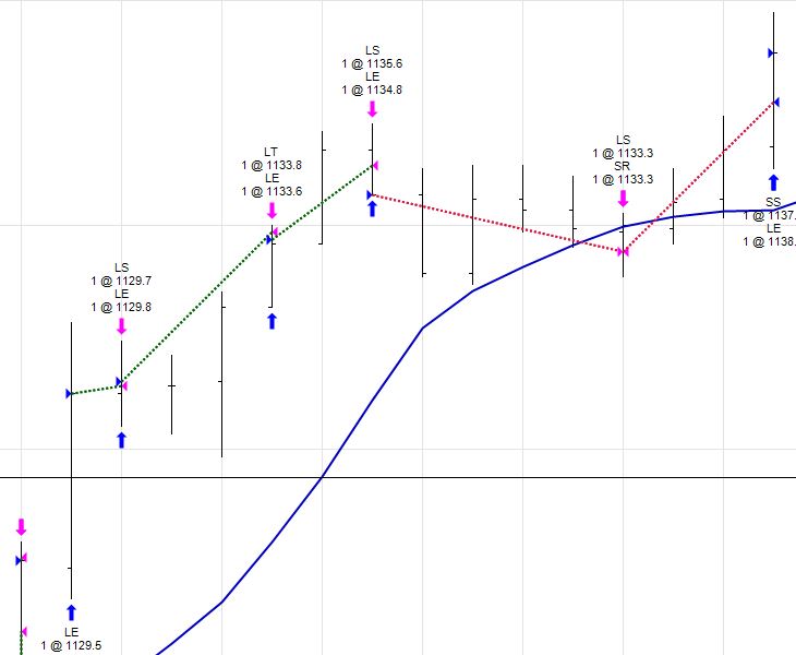 Any ideas why this is happening? In real time it doesn't plot the arrows until the trade is closed and then it plots it as shown. The close trade markers are showing up correctly, only the open trade markers are off.