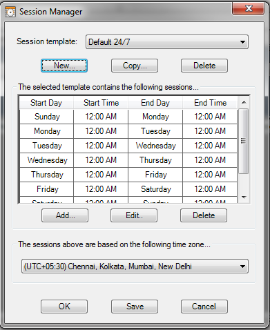 Dear sir, the charts are not displaying in IST... I have changed session template to default 24*7 and renamed it. I have uploaded data by choosing GMT +5.30 which is IST. for example 01-11-2014 & 02-11-2014 are weekends. but its showing 02-11-2014 & 03-11-2014 .. I have attached screen shots. chart shows data on 01-11-2014 but there is no data on that day (historical data manager screen attached). Pls guide.Last edited by kanna275; 11-15-2014, 12:11 PM.Tags: None
