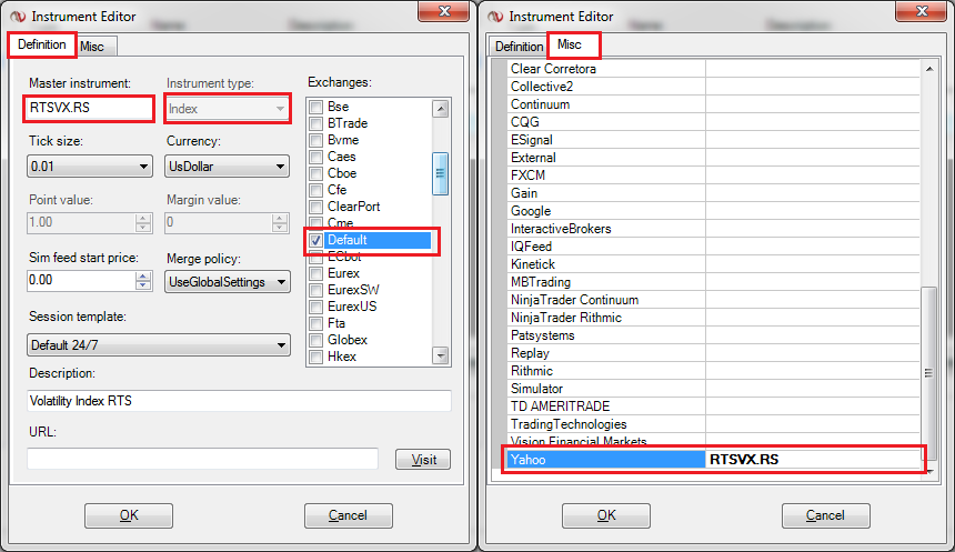 I am recently installed NinjaTrader to make technical analysis of russian symbols: RTSI(index RTS) and RTSVX(volatility index).