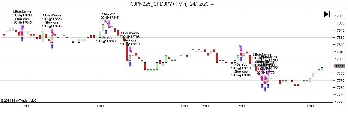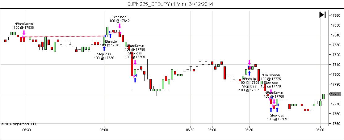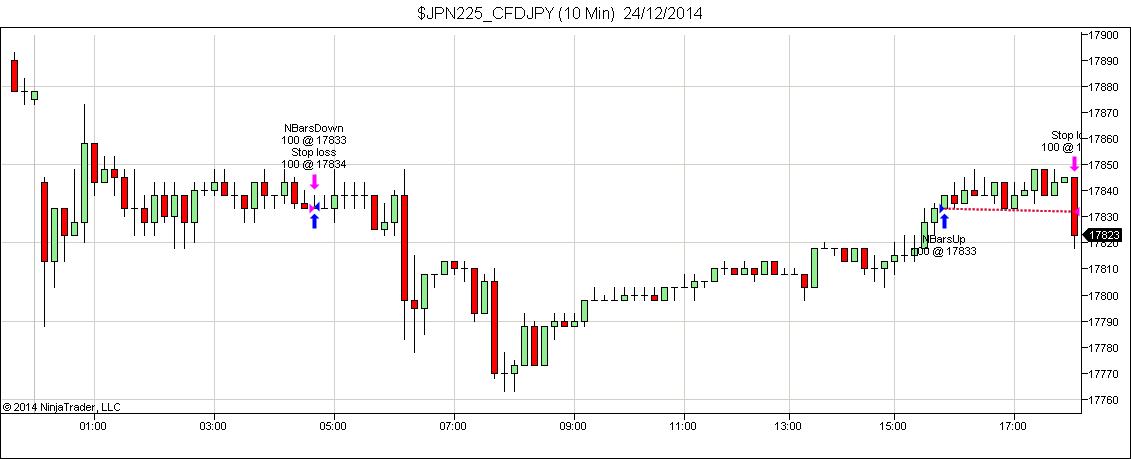 Yes, we are talking about the same script. I attach NBarsUpDnTPv2.cs for your information. You'll see they are both attempting to place identical trades.