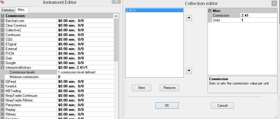 With NQ & CL Symbols, I went to Instrument Manager to Edit Both Symbols and add IB Commissions. NQ $2.01. I did same for CL $ 2.31.
