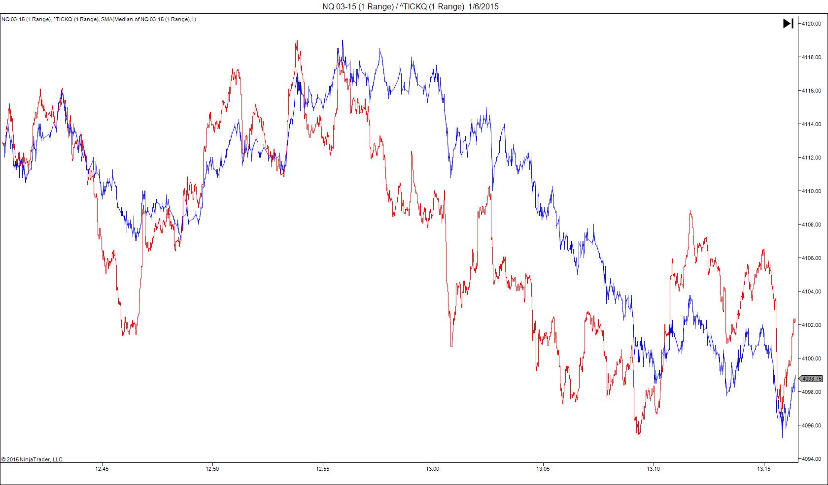 See chart 1 in my post Above that's what happens when I plot the tickq alone. I've tried to plot it alone with no success. Using a 5 second chart the tickq can be overlaid fine as well as plotted alone but why doesn't it work with the range bar charts?